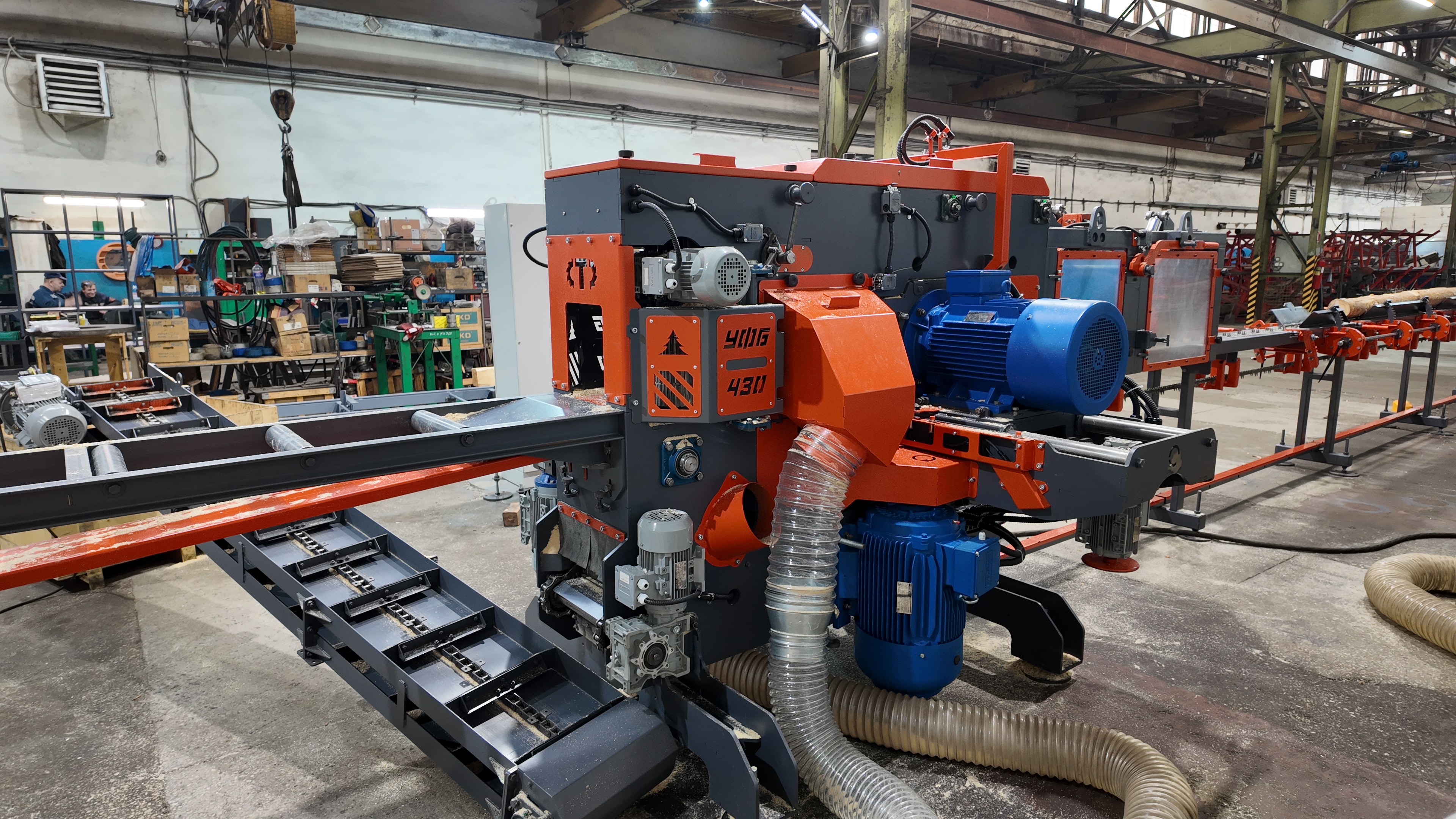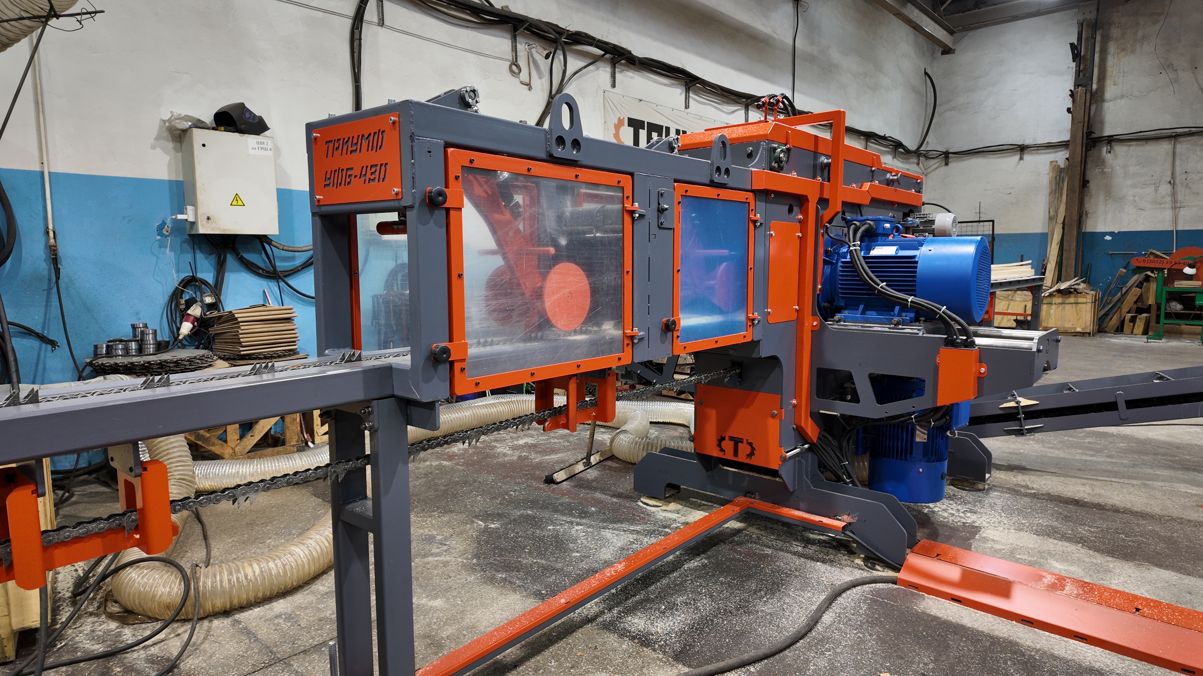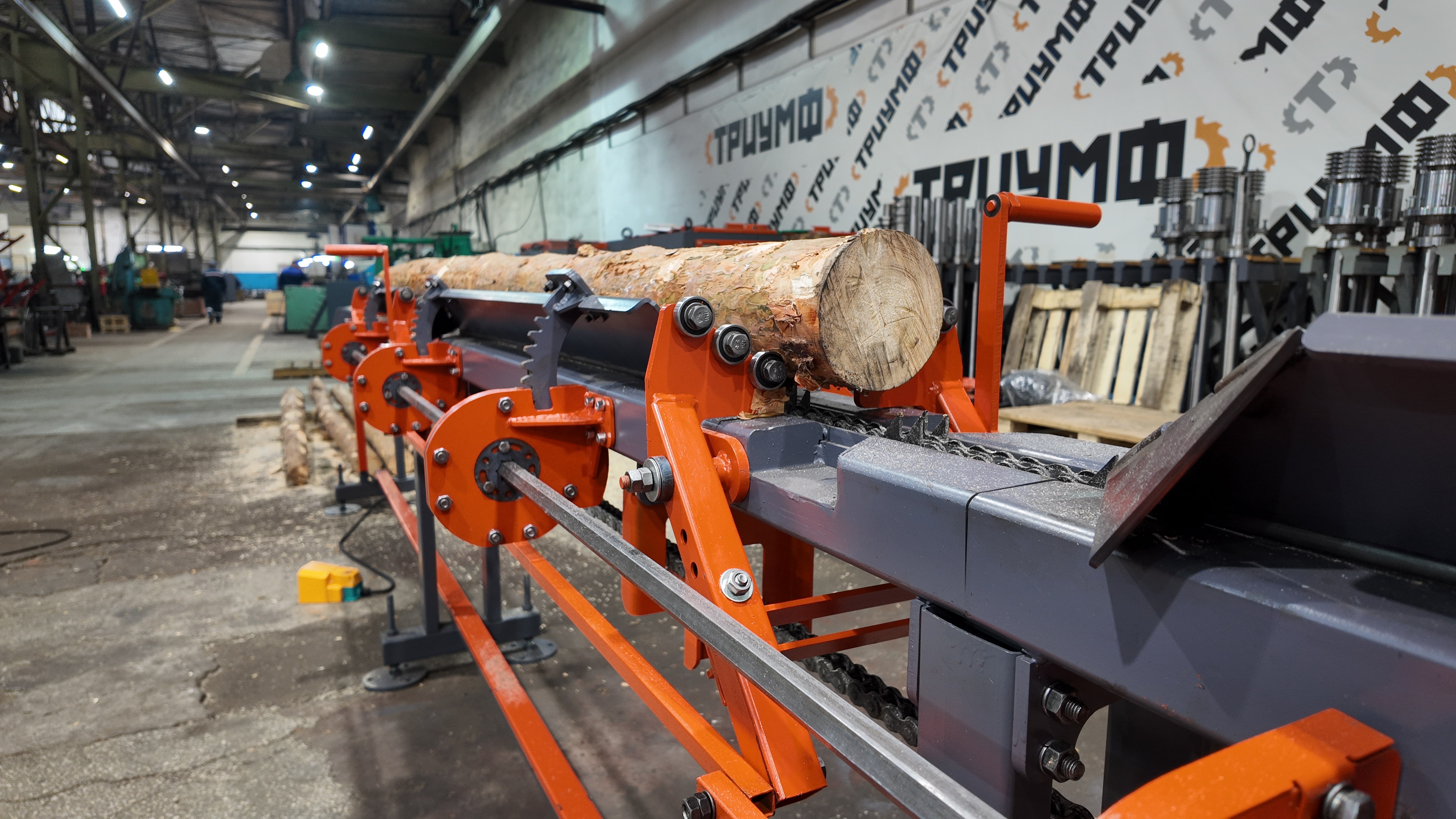 Фрезерно-брусующий станок ТРИУМФ УФБ-430 предназначен для переработки тонкомера диаметром от 80 до 280 мм на обрезную доску за один проход.