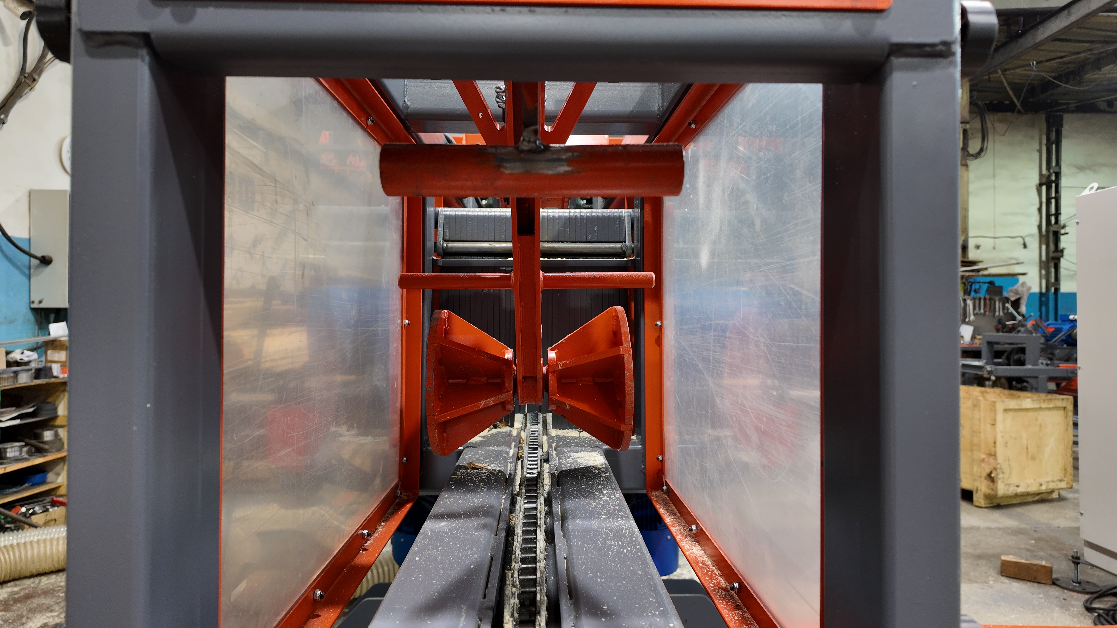 Бревно обрабатывается при помощи высокоскоростных фрез, создающих ровные боковые поверхности лафета заданной ширины (60–160 мм). Регулировка ширины между фрезами задается оператором на выносном пульте при помощи электронной линейки и производится электроприводом.