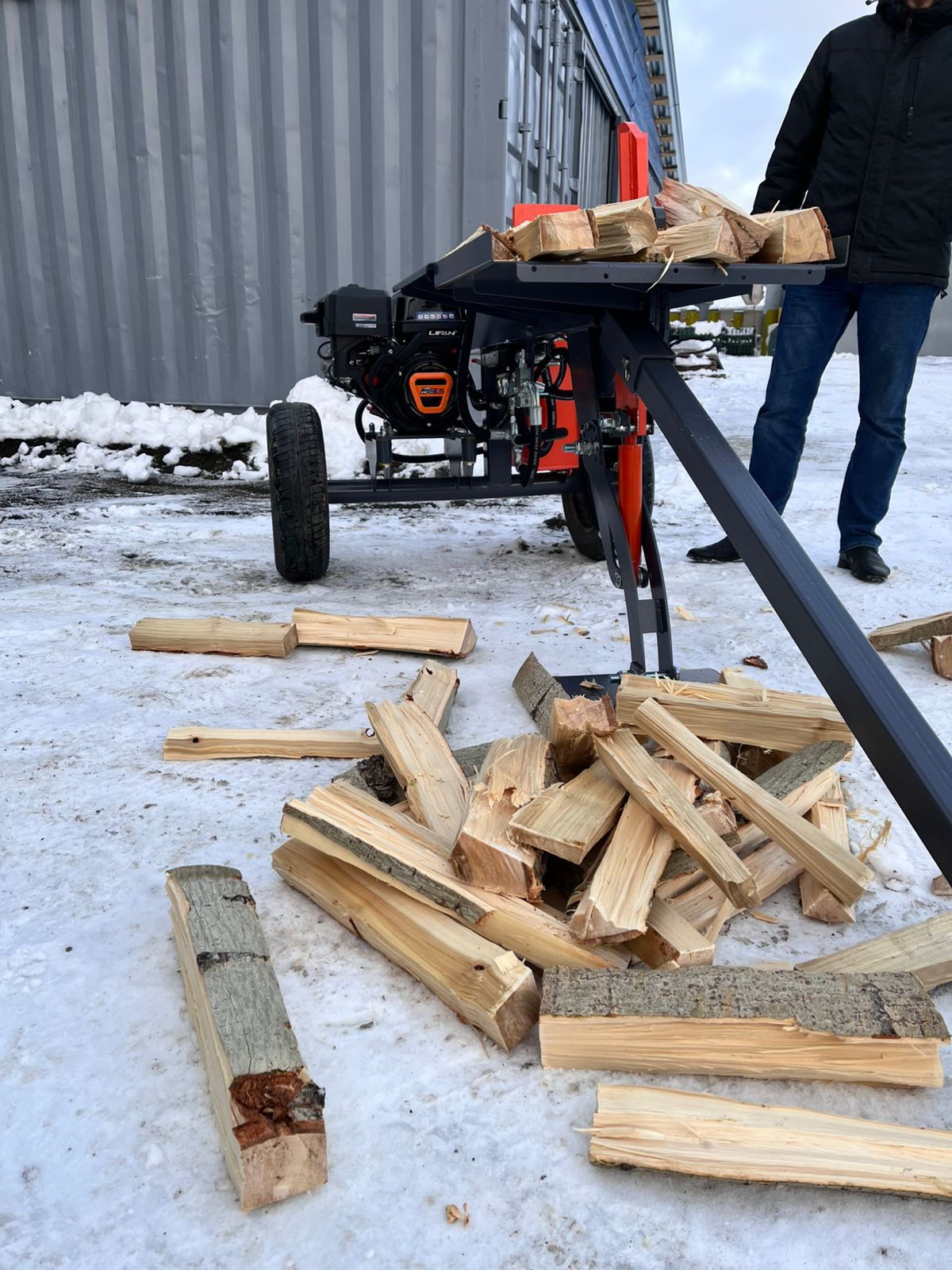7) Специально разработанный нож с удлинённой верхней частью, позволяет работать с любым видом древесины, колоть на 2 и 4 части.